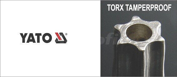 Klíče Torx Yato zahnuté s otvorem na krátkém i dlouhém rameni, vyrobemé z chromvanadiové slitiny oceli CrV6150, tvrzené na tvrdost HRC52-55. Sada obsahuje 9 kusů klíčů. Otvor ve středu klíče umožňuje i montáž tzv. bezpečnostních šroubou Torx (Torx - Tamperproof).