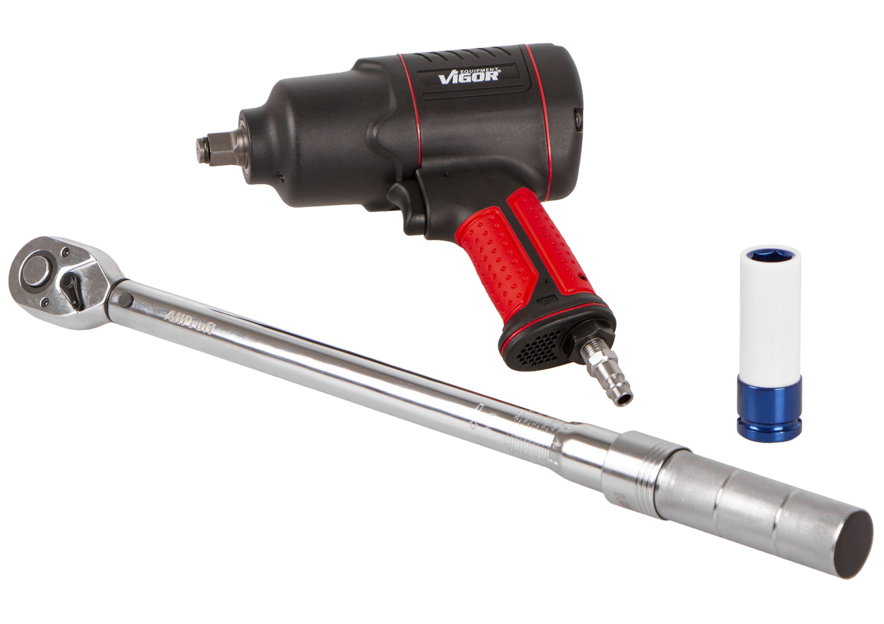 Vďaka kvalitnému rázovému uťahováku, momentovému kľúču a špeciálnemu nástrčnému kľúču je celý proces pohodlnejší a efektívnejší.