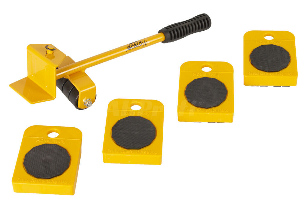 Sada na sťahovanie nábytku 5 ks. Sada obsahuje 4 pojazdné podložky a 1 zdvíhaciu páku.
