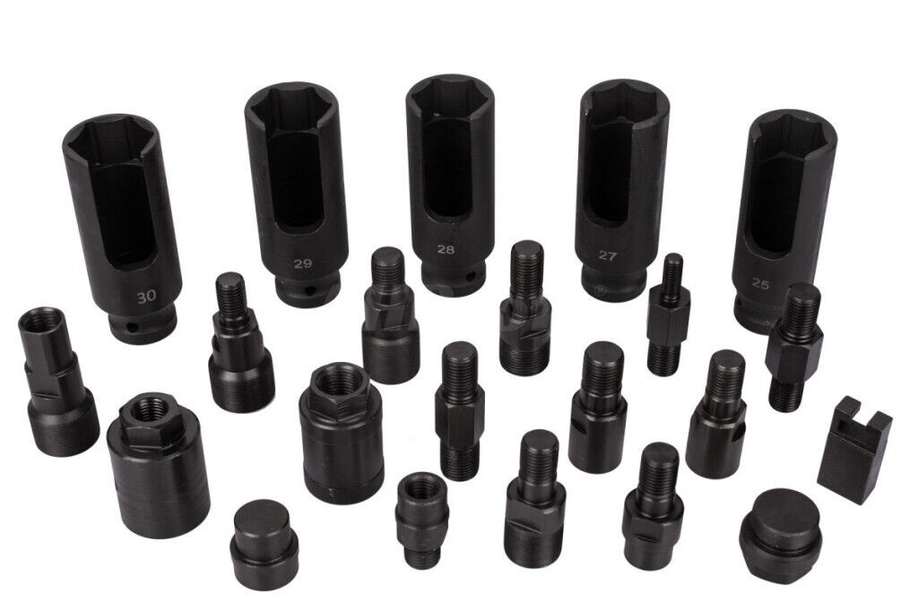 Obsahuje reverznej kladivá, kľúče na vstrekovače, vyťahovacie vidlica, podložky, adaptéry a ďalšie.