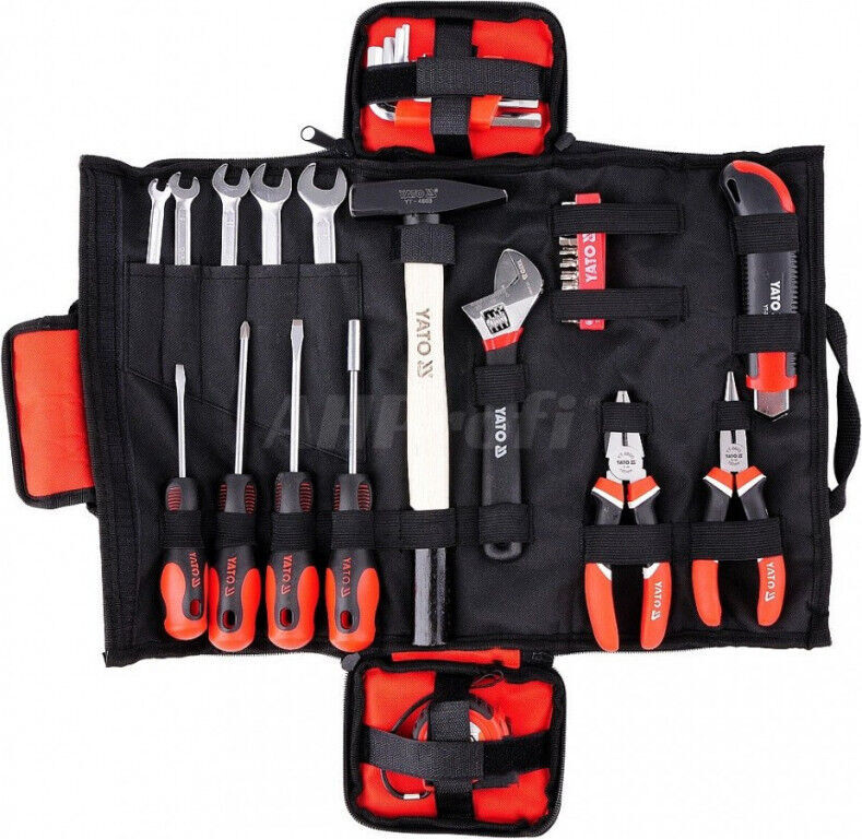 | Sada obsahuje: | Nôž, Kladivo / palicu, Nastaviteľný kľúč, Torx, Imbus, Meter, Skrutkovače, Hlavica s bity, Kliešte, Otvorené kľúče |