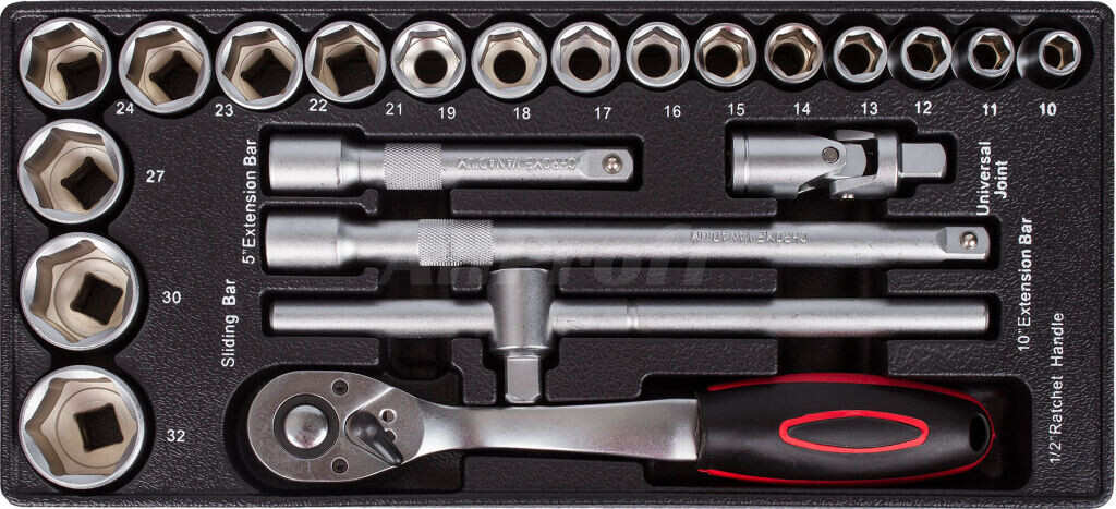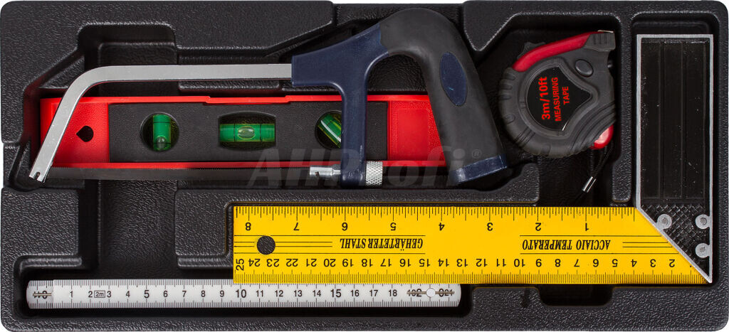 V sadách náradia nájdete gola sadu 1/4", 3/8" aj 1/2", nástrčné kľúče, kliešte, kladivo a paličku, skrutkovače (klasické, elektrikárske i hodinárske), IMBUSy, očkoploché kľúče, meradlá a napr. rašple a pilníky.