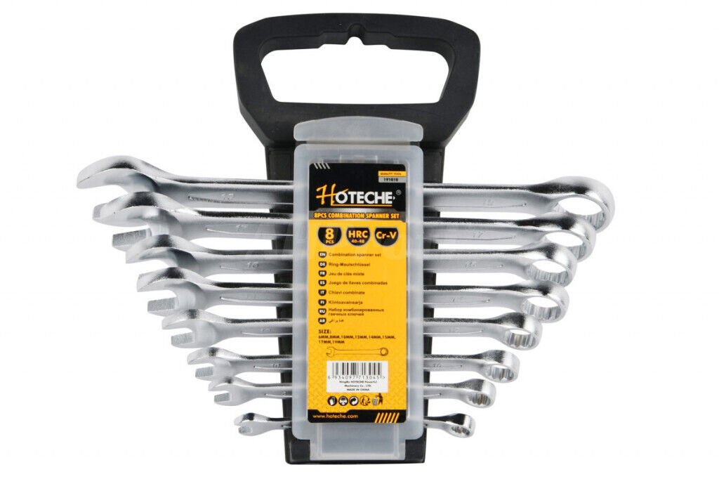 Očkoploché kľúče v sade 8 ks, ktorá je prehľadne uložená v plastovom držiaku. Vďaka držiaku je potom sada úspornejšia na skladovací priestor a hodí sa ako na cesty, tak na montáž. Kľúče sú vyrobené z kvalitnej chrom-vanadiovej ocele.