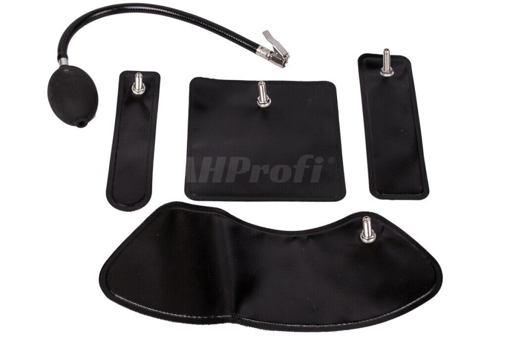 Vankúšiky pre servisy k núdzovému otváraniu dverí, šetrné k laku, obsahuje 4 rôzne tvarované vankúšiky a ručnú pumpu.