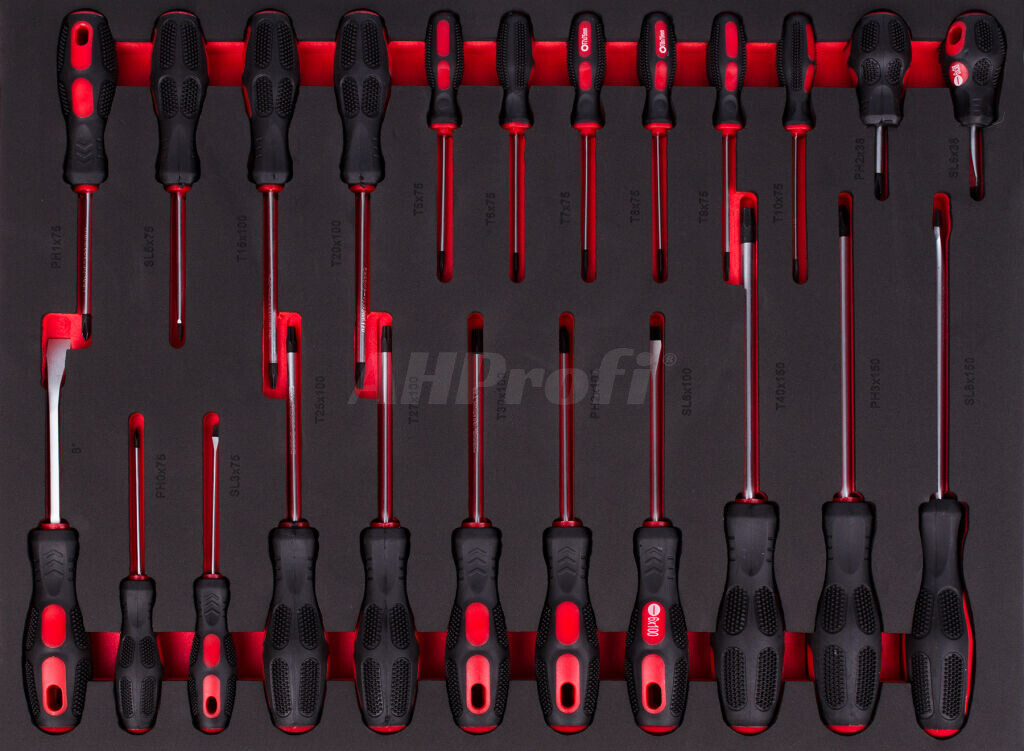 Sada skrutkovačov vo výplni do dielenského vozíka, 23 ks - AH12449-SŠ