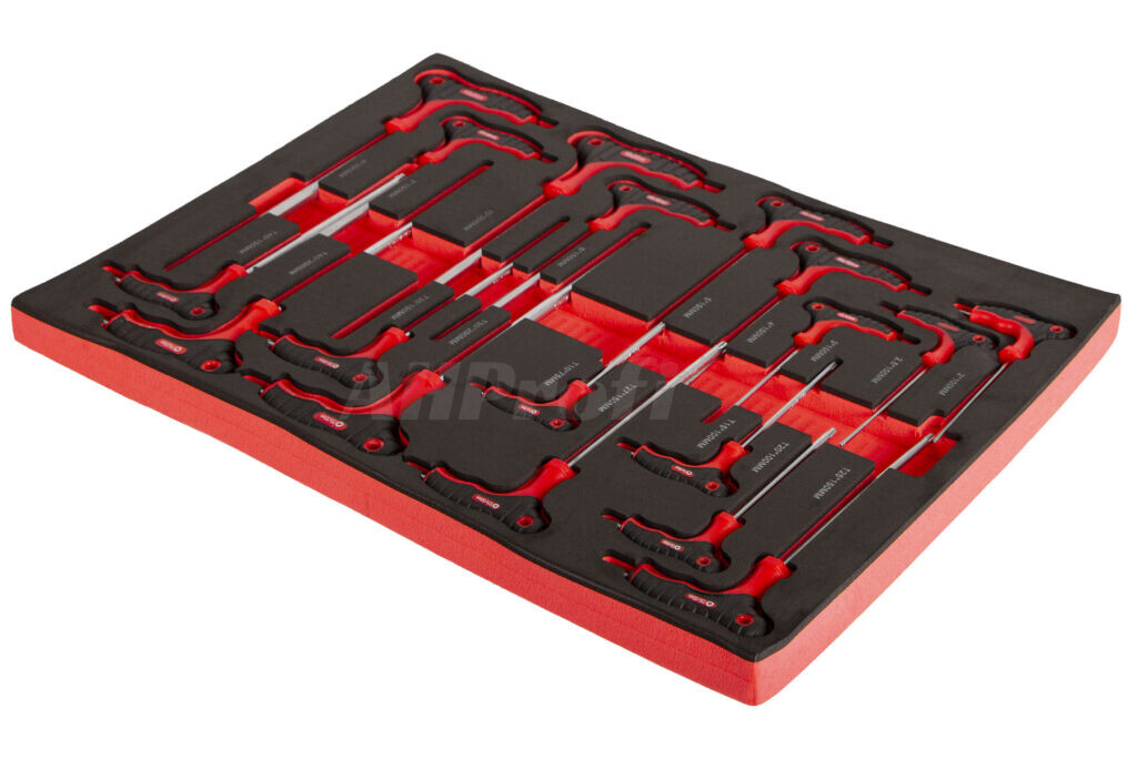 Sada IMBUS a TORX T-kľúčov 18 ks vo výplni do dielenského vozíku 520x395mm.