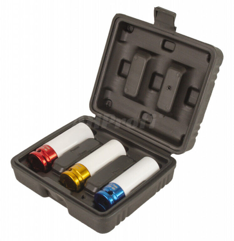 Sada obsahuje 3 ks kľúčov o veľkostiach 17 mm (modrá), 19 mm (zlatá), 21 mm (červená) a dĺžke 80 mm.