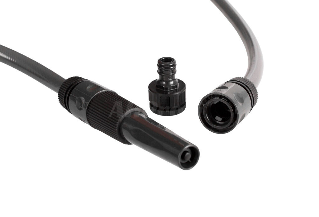 Hadica ukončená rýchlospojkou pre pripojenie príslušenstva, napr. striekacie pištole. Z bubna je možné hadicu ľahko vyťahovať a v požadovanom vytiahnutí sa automaticky zaaretuje. Potiahnutím hadice sa západka aretácie uvoľní a hadica sa navíja späť do bubna.