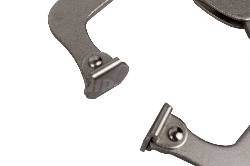 Upínacie kliešte sú vyrobené z kovanej chrom vanadiovej ocele. Poniklovaná povrchová úprava zaisťuje vyššiu odolnosť voči korózii.