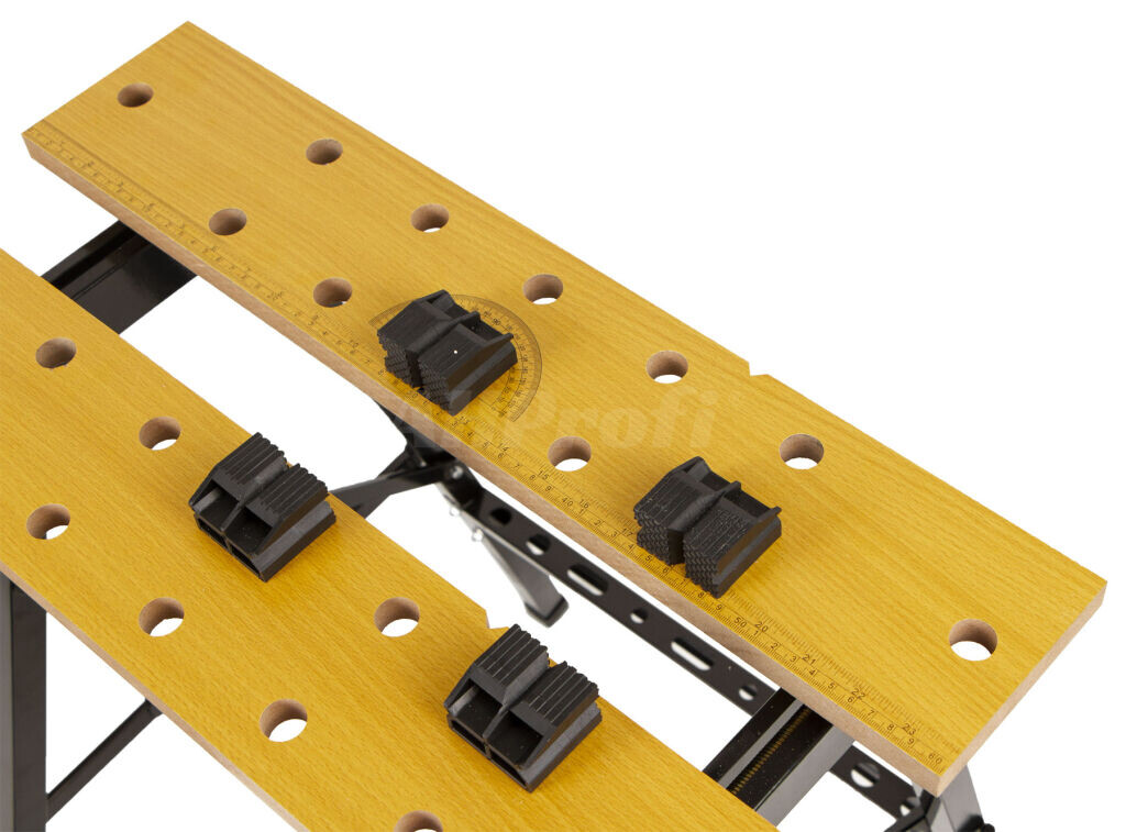 Stôl má celkovú nosnosť až 100 kg. Na pracovnej doske je vytlačená stupnica spoločne s uhlomerom pre pohodlnejšie meranie pri práci.