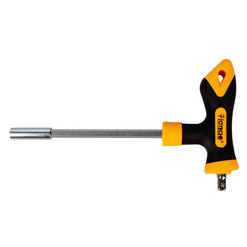 Ručný skrutkovač typu T v sade s nástrčnými kľúčmi a bity vyrobené značkou Hoteche. Balenie náradia je vyrobené z Cr-V ocele. Sada má 331 g. Dĺžka celého skrutkovača je 180 mm a šírka 105 mm. Vhodné pre bežných užívateľov aj profesionálov.