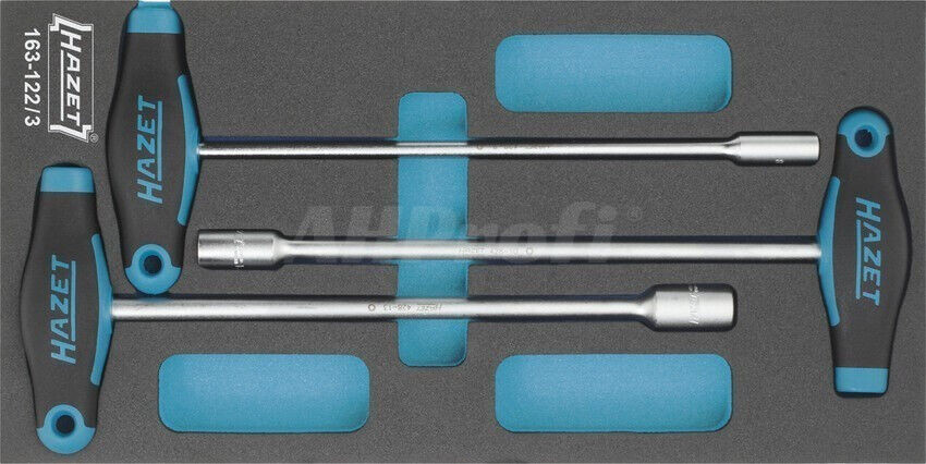 Sada kvalitných nástrčných šesťhranných kľúčov HAZET, 3 kusy v penovej vložke, vhodné pre montážne vozíky, T-rukoväť.