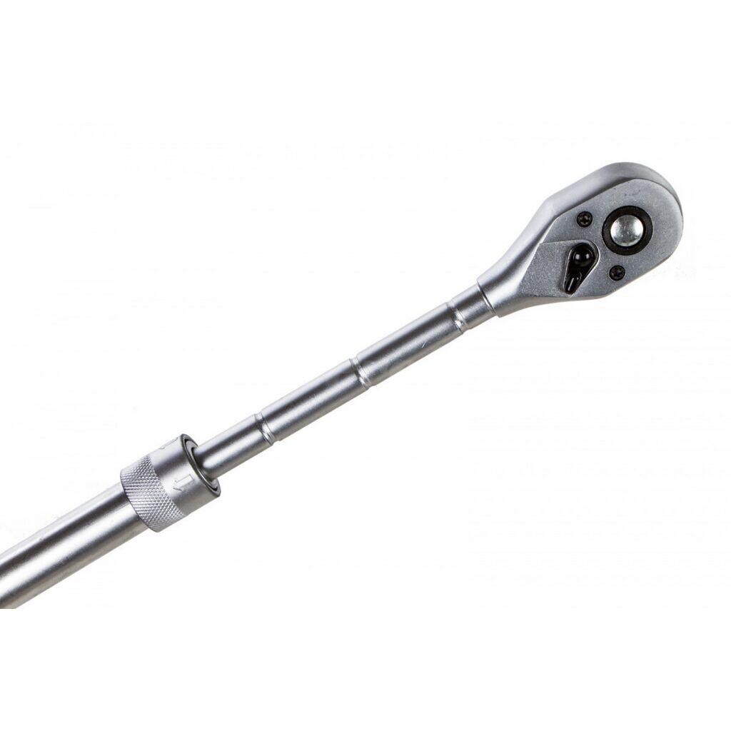 Teleskopické račne v sade v plastovom kufri je vyrobená z chrom-vanadiové ocele. Nástroj je kovaný, tepelne spracovaný pre zvýšenie tvrdosti (vysoká tvrdosť). Telo račne je pochromované s finálnou povrchovou úpravou v matnom prevedení.