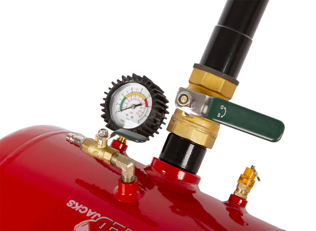 Vzduchové delo je vybavené nádobou o objemu 19 litrov, manometrom pre kontrolu tlaku a plniacim ventilom.