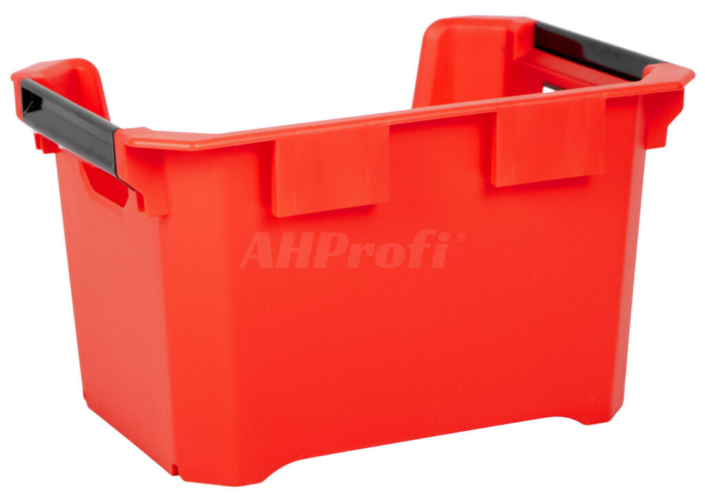 Plastový úložný box k závesnej doske MW7000, rozmer 415 × 290 × 255 mm, nosnosť 20 kg. Odolný polypropylén, integrované ochranné rukoväte. Samostatne stohovateľný.