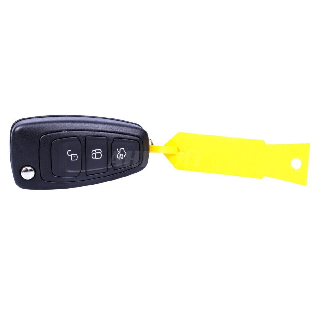 Žlté plastové visačky na kľúče sú veľkou pomôckou pre autosalóny, autobazary i autoservisy pre jednoduchú identifikáciu kľúčov. Jednoducho potom spoznáte, ktorému klientovi / autu kľúč patrí. Permanentným fixom, ktorý je priloženy ako darček, napíšete na visačku na kľúče SPZ či ID a nemusíte riešiť zmývanie, ušpinené prsty a pod. Pri predávaní kľúčov klientovi jednoducho prestrihnete nožničkami. Perfektné / jednoduché / lacné = ideálne riešenie takmer pre každého.