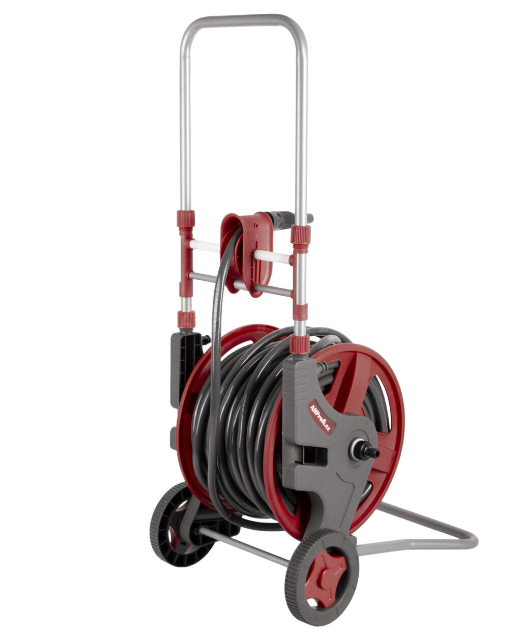 Vozík na záhradnú hadicu Vám poslúži u dielni, garáže i na záhrade pre jednoduchú dopravu i uskladnení záhradných hadíc. Ušetrite miesto i čas pri skladovaní hadice - hadicu jednoducho vytiahnete z bubnu a následne za pomoci páčky naviniete.