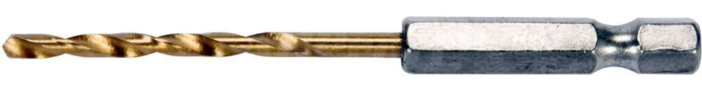 HSS vrták s titanovým povlakem s uchycením HEX 1/4" pro pevné uchycení. Délka 81mm.