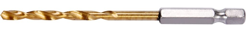 HSS vrták s titanovým povlakem s uchycením HEX 1/4" pro pevné uchycení. Délka 100mm.