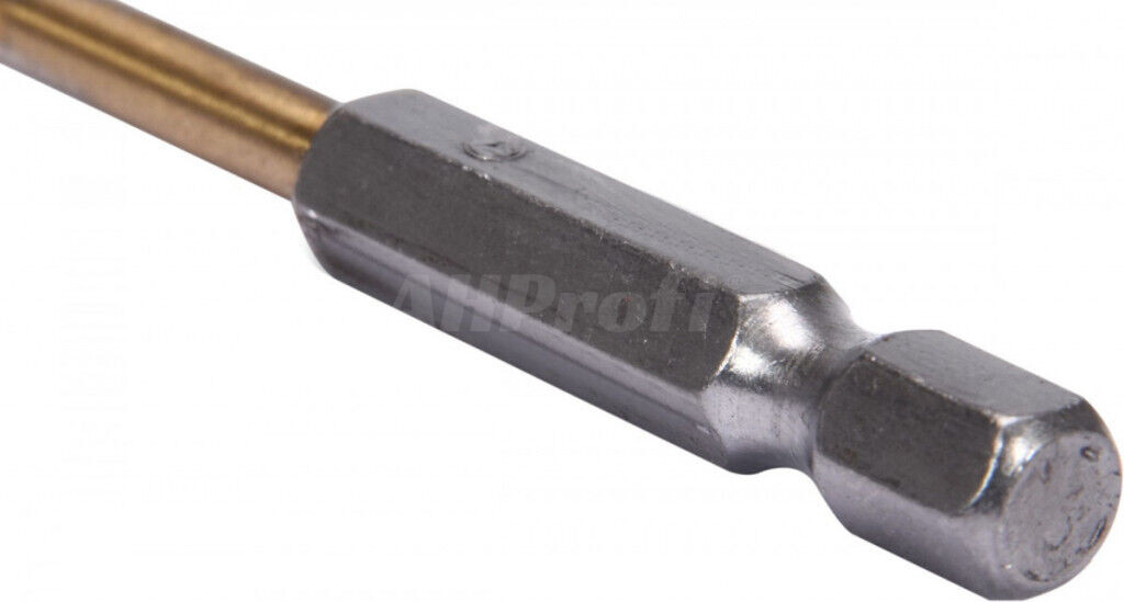 HSS vrták s titanovým povlakem s uchycením HEX 1/4" pro pevné uchycení. Délka 95mm.