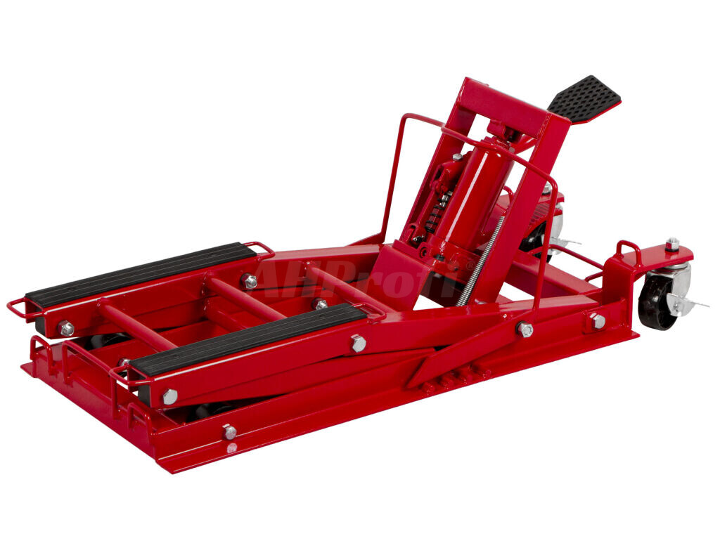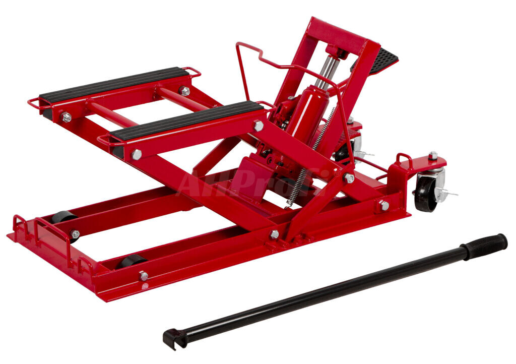 Hydraulický zdvihák motocyklov s pedálovým ovládáním a nosnosťou až 680 kg.